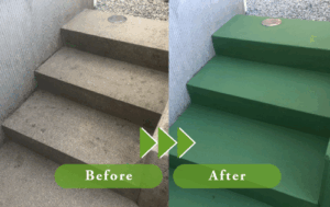 当社おすすめの滑りにくい骨材入りの防水塗料を使って階段も塗装!