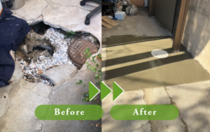 ちょうどご主人がお庭の植木を大々的に伐採されている最中でした。