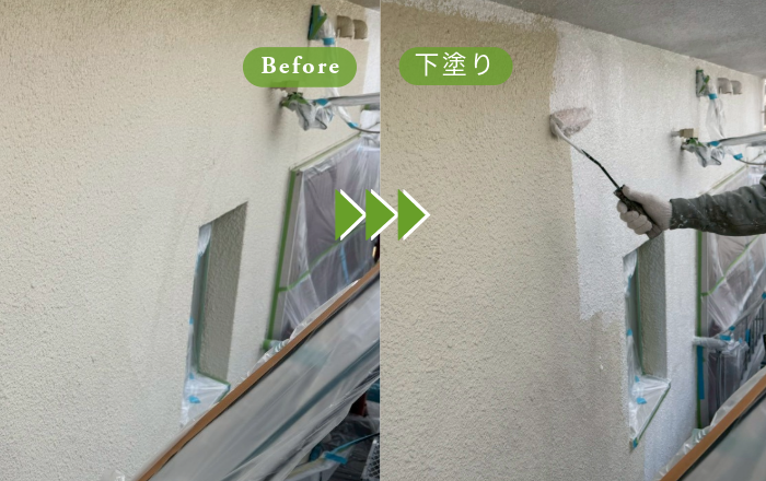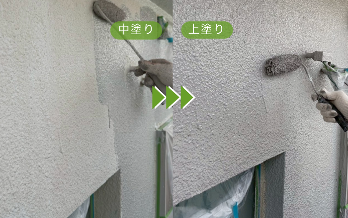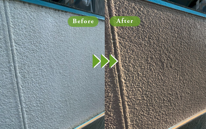 外壁につきましては、当社が得意とするハイブリッド塗料を使用し、下塗り・中塗り・上塗りの3工程を丁寧に重ねました。塗膜に厚みと耐久性を持たせながら、美しい艶が際立つ仕上がりとなっております。