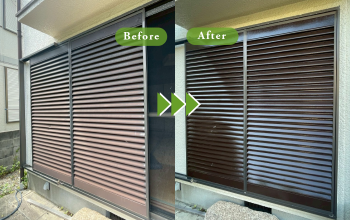 外壁については、前回(約10年前)の工事で出始めのハイブリッド塗料で耐久性の高い塗料を使用して施工させていただいており、現在も美しい状態を保っておりました。しかし、雨や日差しの影響を受けやすい雨戸については、一般塗料での仕上げであったため、経年による劣化が見受けられました。