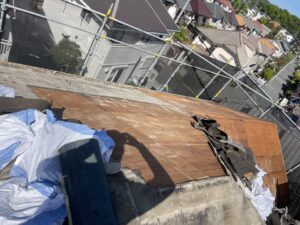 瓦を撤去していくと、下地となる野地板の破損も見つかり、こちらも新しく交換。結果的に大規模なリフォームとなりました